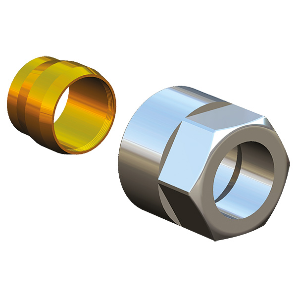 Plieniniams ir variniams vamzdžiams, metalinė tarpinė, jungiamoji veržlė M 22 x 1,5; veržlė chromuota. Paprastai netinka chromuotiems metaliniams vamzdžiams ir nerūdijančio plieno vamzdžiams.