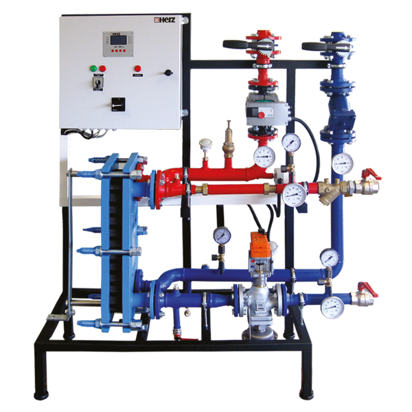 su priešpriešnio srauto šilumokaičiu karšto vandens gamybai iš centralizuotos šildymo sistemos (pirminėje pusėje) ir tiekimu į žemos temperatūros pastatų sistemas (antrinėje pusėje).Vandens srautas valdomas mikroprocesoriniu valdikliu su dviejų ašių valdymo vožtuvu. Šilumos skaitiklio adapteris sumontuotas piminėje pusėje. Siurblio greičio valdiklis, keitiklių stotis su išsiplėtimo indu antrinėje pusėje.